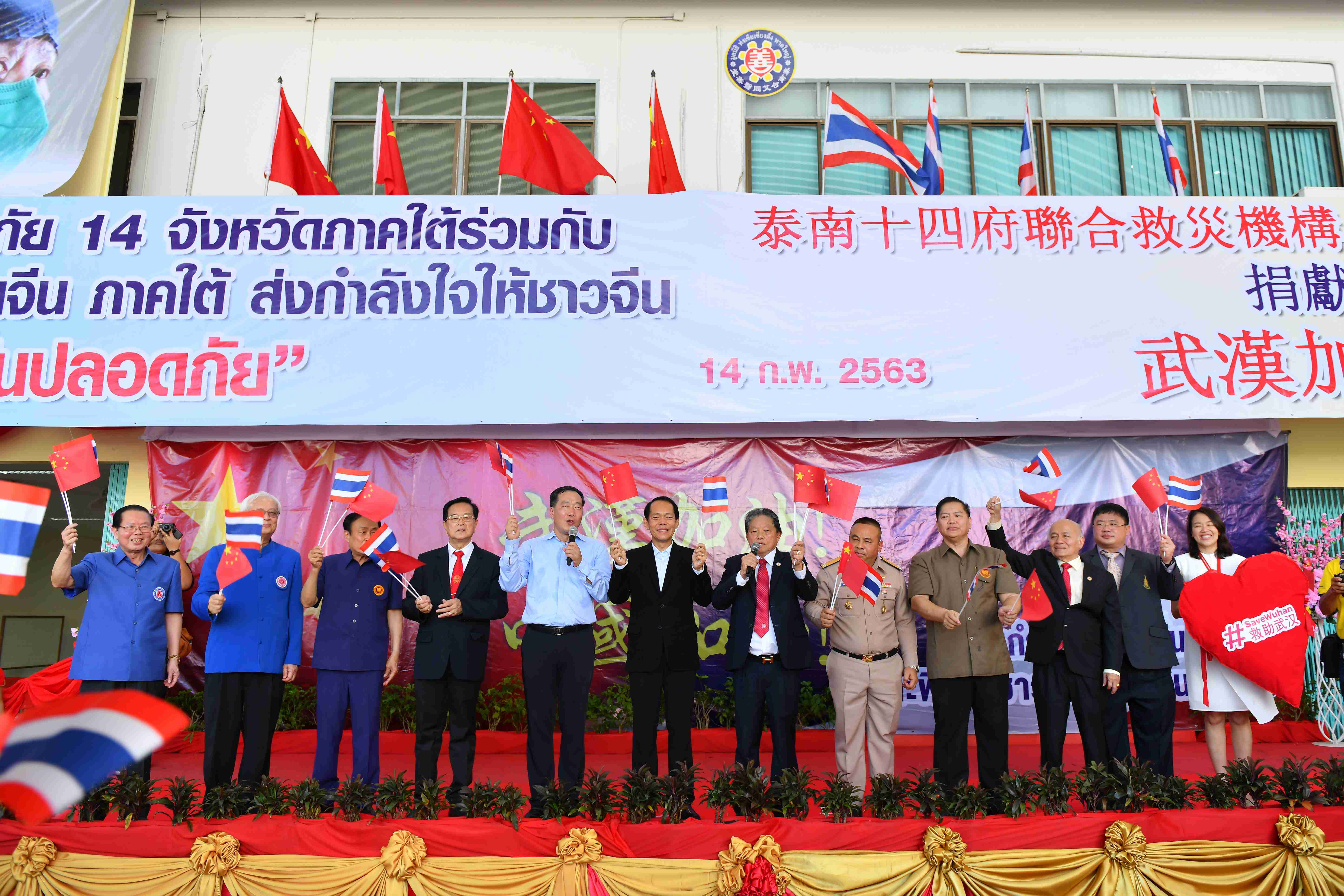 2月14日,在泰國南部宋卡合艾,一場温暖人心的募捐活動順利舉行。泰南十四府聯合救災機構攜泰南僑聯會、姓氏宗親會以及當地醫院、學校等機構及各界人士,舉辦主題為“武漢加油,中國加油”的抗擊疫情募捐大會,為奮戰在抗擊新型冠狀病毒肺炎戰役中的中國人民送上祝福和關懷。中國駐宋卡總領事馬鳳春、宋卡府府尹扎祿瓦出席並致辭,泰南十四府聯合救災機構主席林松熙主持大會並講話。