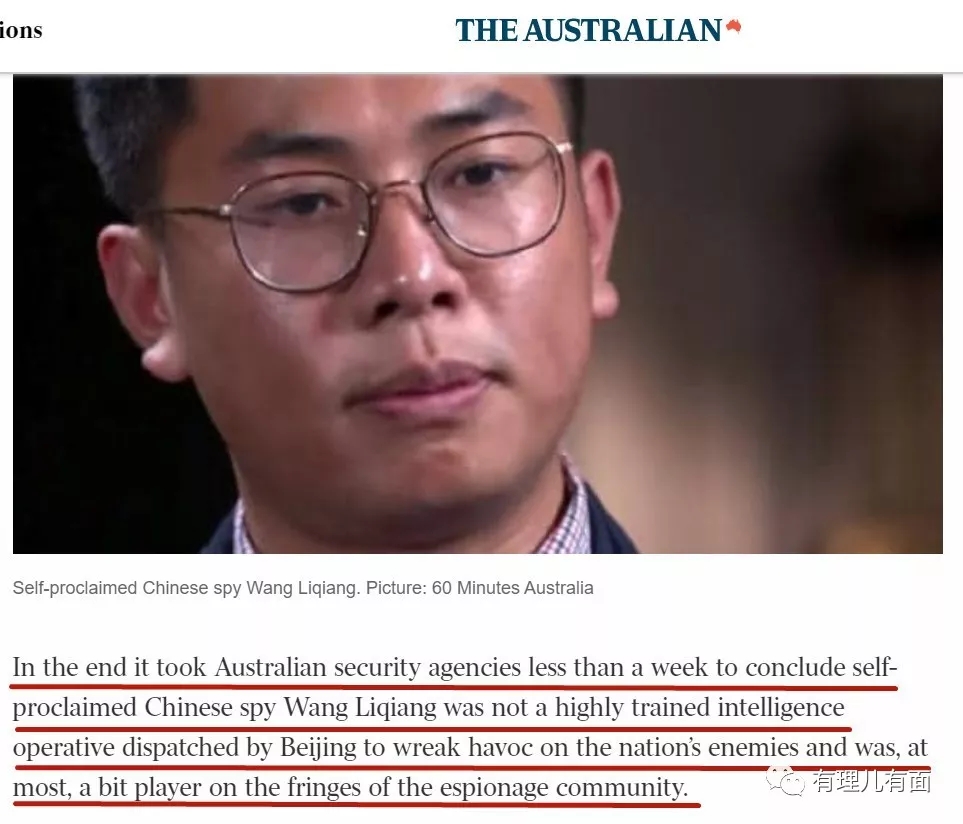 當然,與反華媒體一樣缺少道德底線的,還有那些反華政客。據澳媒《澳大利亞人報》報道,澳大利亞安全機關為了王立強,不僅做了大量的調查工作,還成立了"高級別情報特別工作組",最後內部達成的共識是:儘管針對王立強的調查仍在進行之中,但他並不是自己聲稱的那種變節的高級特工,充其量只是遊走在特工團體邊緣的“路人甲”。這種騎虎難下的滋味真是酸爽。