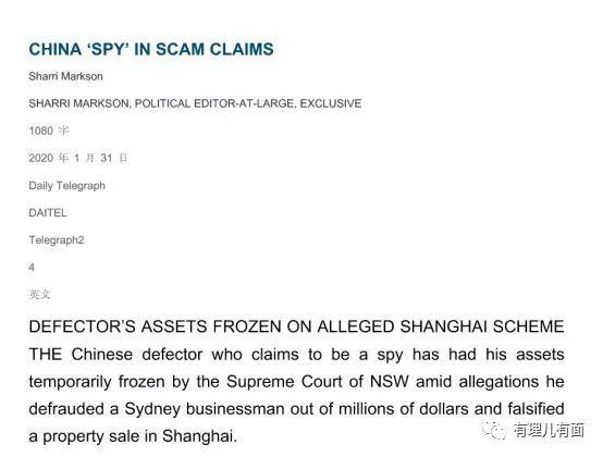而這次近在咫尺的指控,王立強想抵賴,恐怕也難了。目前,新南威爾士州最高法院已經開庭受理,並頒令凍結了王立強在澳的資產。