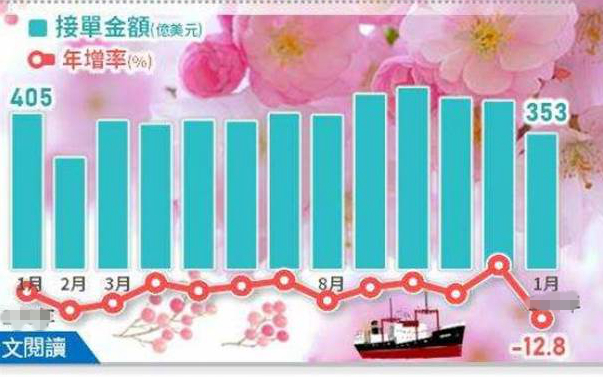 台灣地區1月份外銷訂單金額統計為353.1億美元,7大類項目訂單受到產業淡季及及春節因素,金額全面減少。(圖片取自台媒)