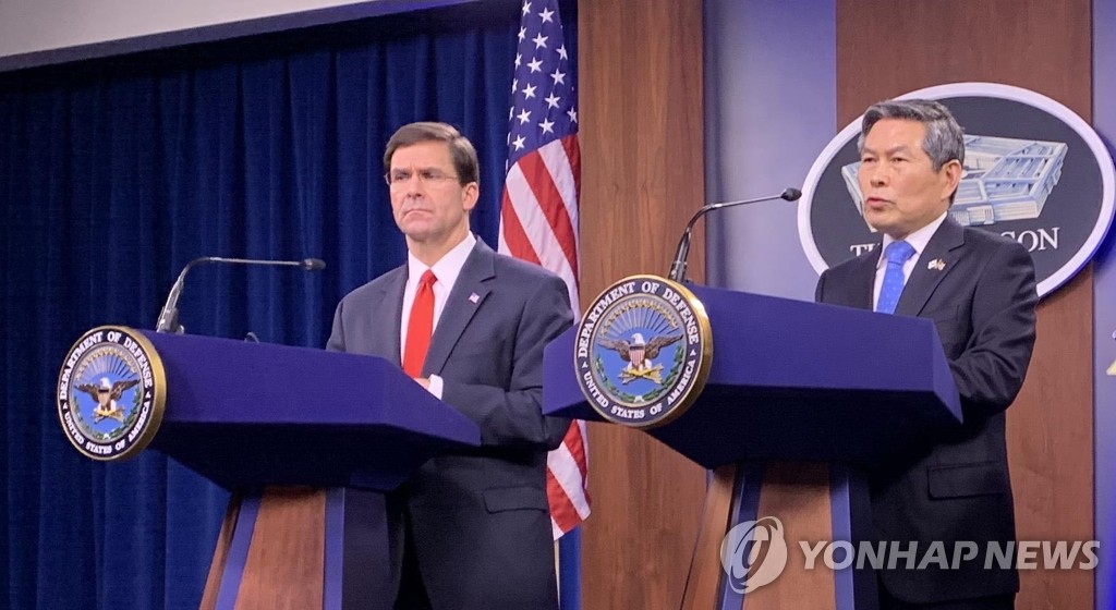 【環球網軍事報道】據韓聯社2月24日報道,韓國國防部長官鄭景鬥24日在華盛頓同美國國防部長馬克·埃斯珀舉行會談,雙方就防衞費分擔、聯合軍演等事宜交換意見。