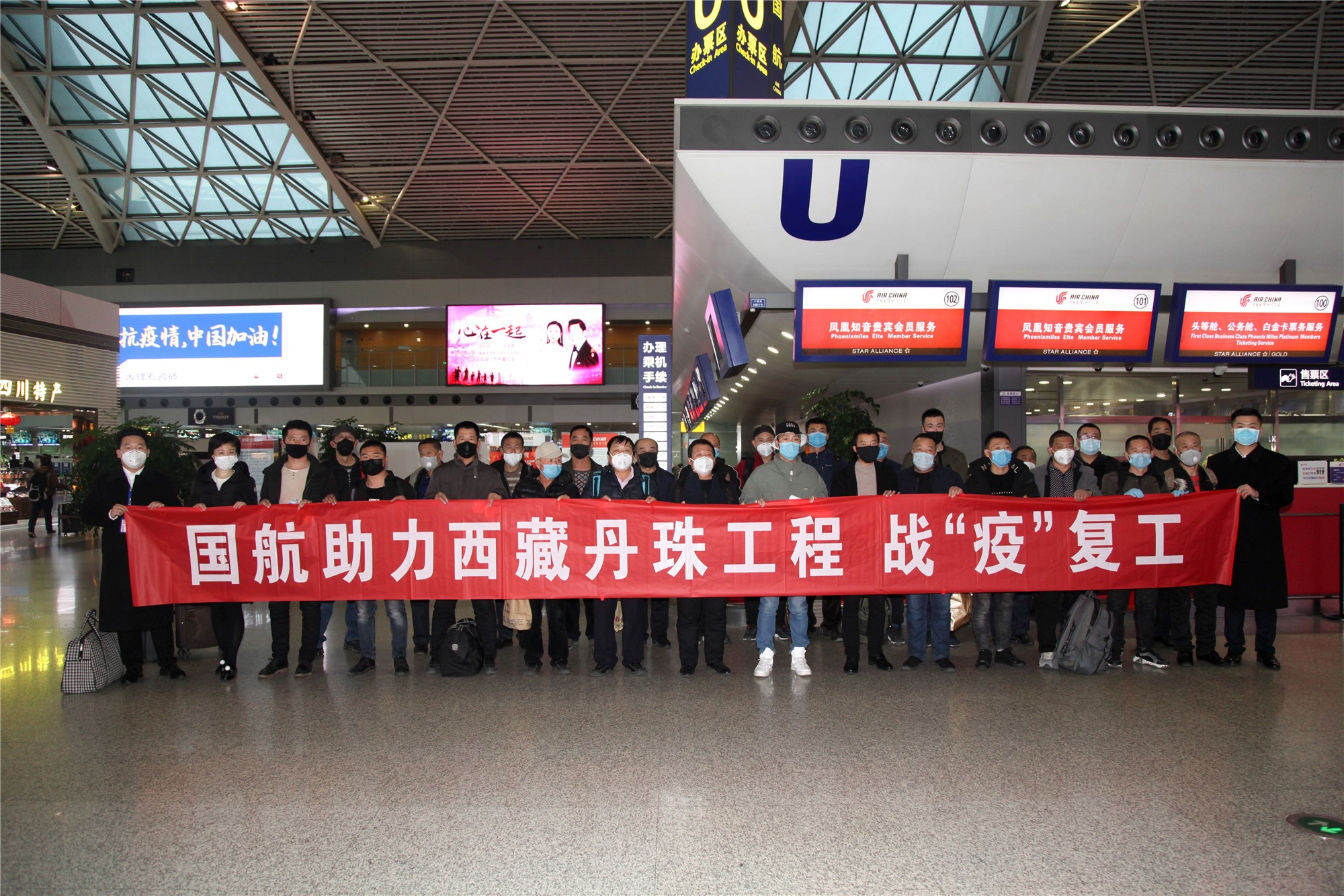 2月26日上午,國航提供加班包機定製化航空服務,將西藏自治區一家工程技術公司的124名復工人員,從成都運送到昌都邦達高原機場。