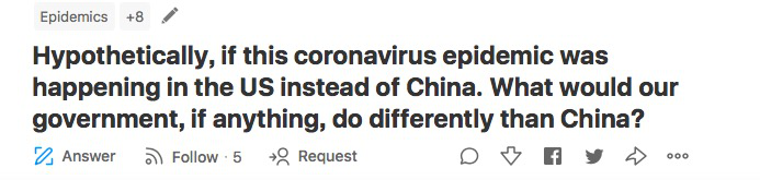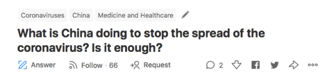 【環球網報道 見習記者 孫銘溪】新型冠狀肺炎的爆發,引發全世界對中國政府處理此次重大突發公共衞生事件的關注,有網友在美國版知乎Quora平台上提出問題“中國是如何防止疫情蔓延的,他們做的夠嗎?”