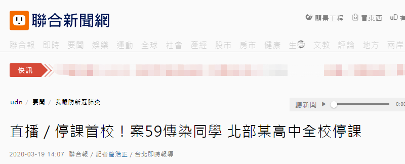 台灣暴發首起校園羣聚感染,第59例病例同班同學也確診,全校停課