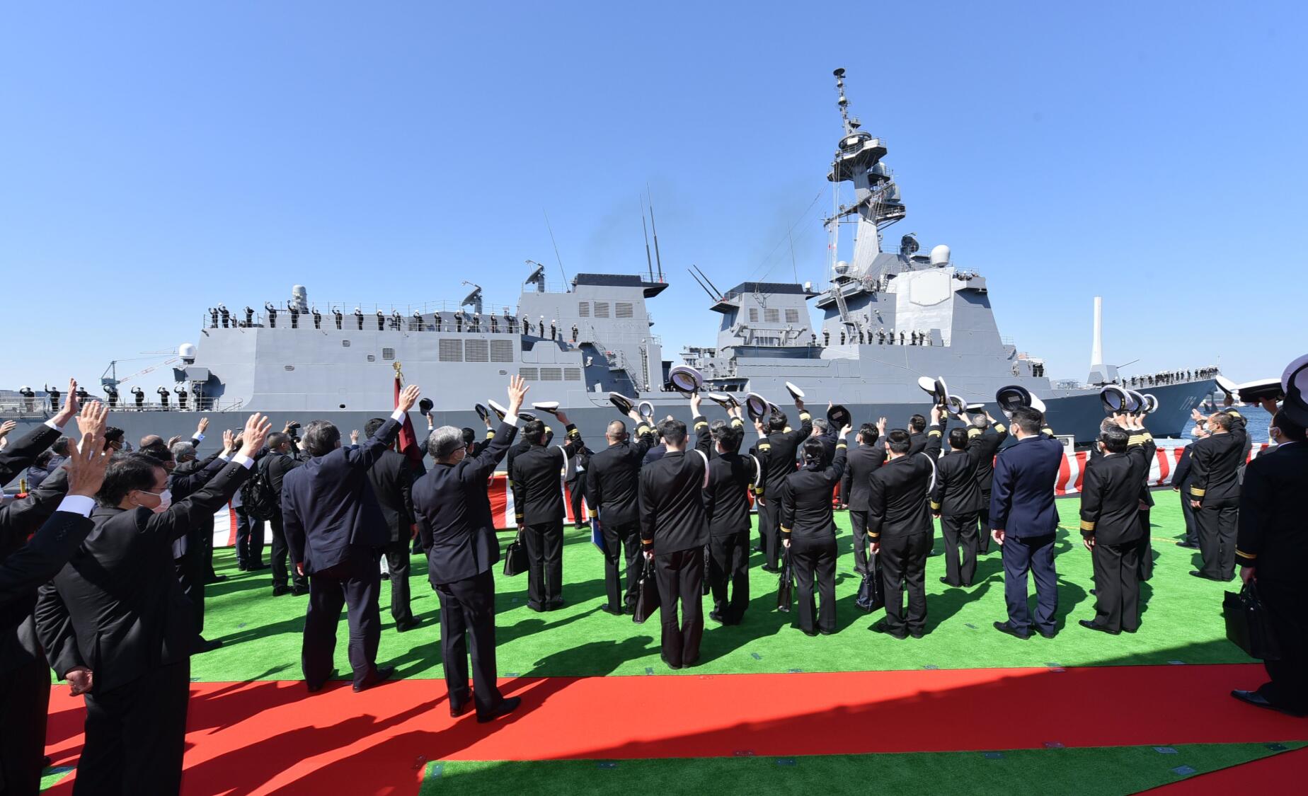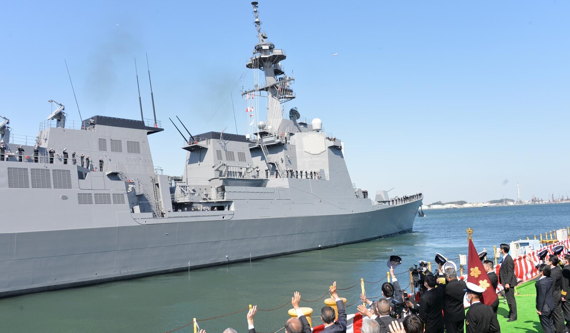 摩耶號是日本最新建造的摩耶級新一代驅逐艦首艦,也是繼金剛級和愛宕級之後日本又一款國產宙斯盾驅逐艦。此前曾有消息稱,因受新冠肺炎疫情影響,授旗儀式或將推遲舉行,但日本防衞省最後還是決定按照原計劃舉行儀式。