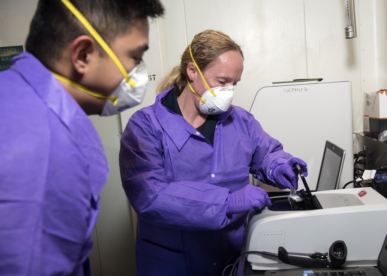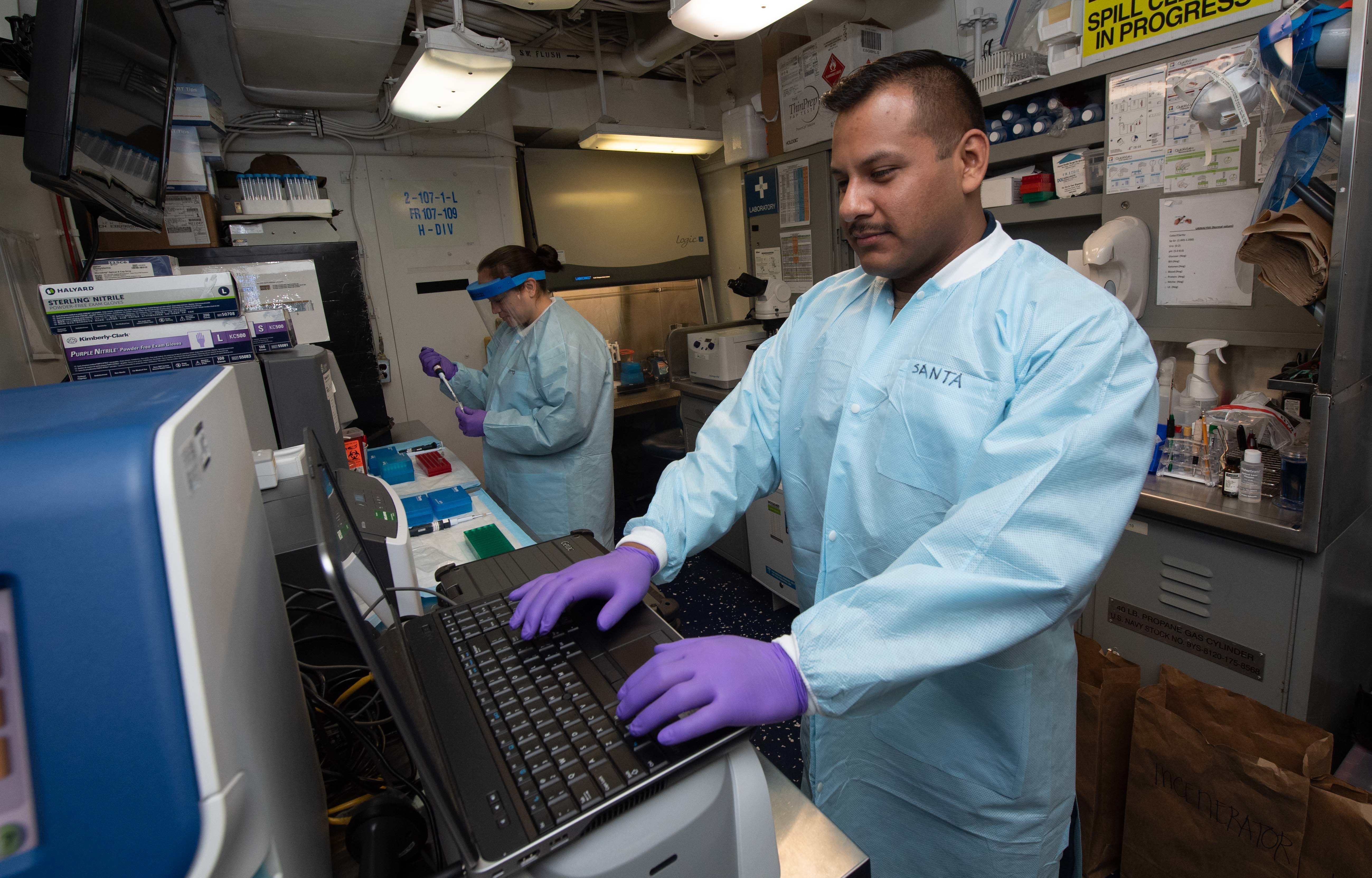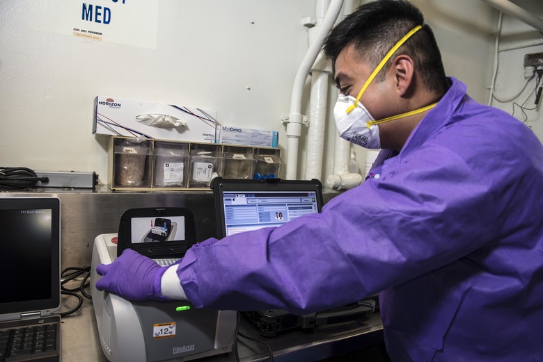 “這是海軍醫學防護部隊已經部署的最先進的實驗室裝備,”美國海軍預防醫學小組組長、微生物學家達尼特·畢曉普中校説:“我們可以及時作出強制醫療的決定,從而提高艦員的健康水平,最大限度第降低新冠病毒爆發的風險。”