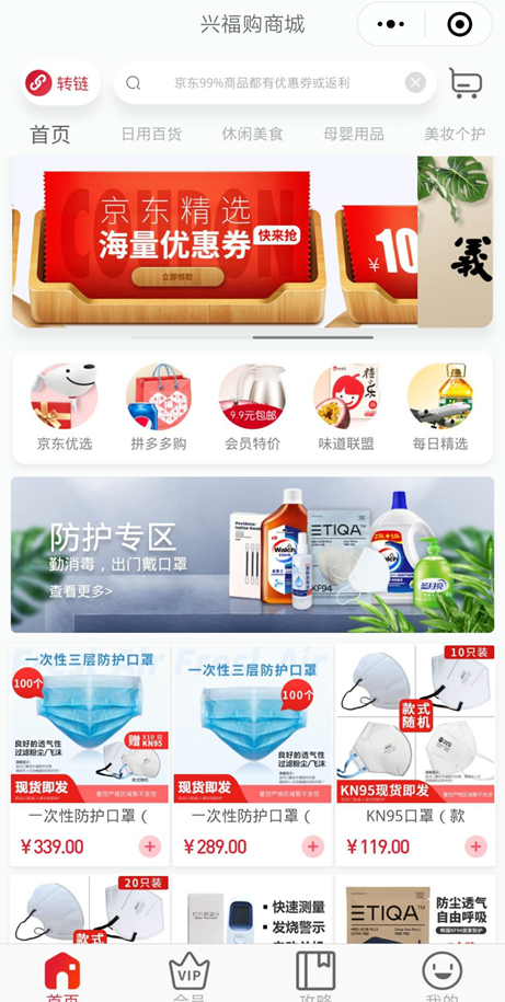 味道雲平台是大興區自己的電商平台,但與一般商品種類單調的區域電商平台不同,“興福購”對接了京東、拼多多等中心化大型電商平台,海量的商品可以選擇。更為吸引人的地方在於,用户通過“興福購”下單,比直接在這些大型平台上下單還多了一層優惠,有專屬的優惠券讓購物變得更加實惠——既有海量的商品,還有地方特色商品和服務,更有優惠,這樣的優點都集中到了“興福購”平台。