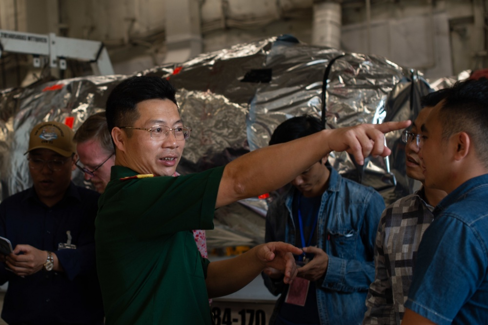 但值得注意的一點是,“羅斯福”號航母當時與邦克山號導彈巡洋艦同時抵達越南峴港,邦克山號導彈巡洋艦停靠在了峴港碼頭,而“羅斯福”號只是停泊在錨地,沒有靠港,越南方面出動了一艘駁船負責在碼頭和航母之間接送人員。在訪問越南期間,美國海軍官兵與越南方面開展了多項交流活動,包括參加在越方碼頭舉行歡迎儀式、前往峴港當地的社區和慈善中心進行慰問以及邀請越南當地媒體和越南官兵上航母參觀交流等。而據美國太平洋艦隊官方公佈的照片顯示,在各種交流活動期間,美國軍艦並未採取任何防疫措施,美越雙方也無人佩戴口罩。