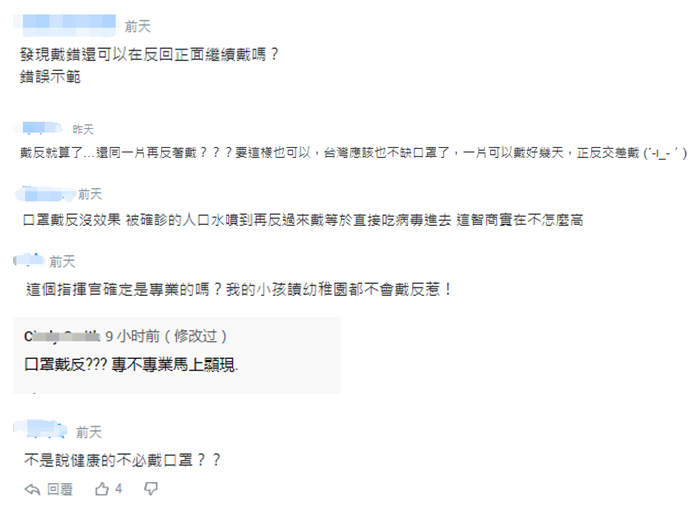 把口罩戴反一會後再改過來繼續戴,台防疫指揮官被質疑:是專業的嗎?