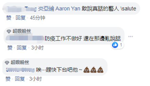 有島內網民留言對炎亞綸表示支持,並指責譚德塞“亂説話”,要其“趕快下台”↓