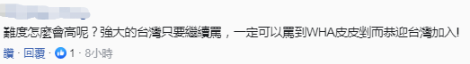 此前民進黨當局提到“希望有機會參與”WHA時,就有島內網民嘲諷,這不是被民進黨唾棄的“爛組織”嗎?一直罵又要加入,綠營都是精神分裂嗎?還有島內網友反諷,難度怎麼會高呢?“強大的台灣”只要繼續罵,一定可以罵到WHA皮皮剉(顫抖)而“恭迎”台灣加入。↓