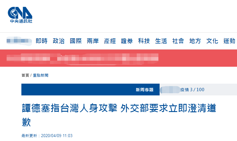 台外事部門還“甩鍋”稱,批評譚德塞的是“國際網絡上有身份及國籍不明網民”,相關言論均與台外事部門無關,也非台外事部門能操控。此外更倒打一耙指責譚德塞存在“政治偏見”,要他“迴歸中立與專業立場”,邀請台灣完整參與對抗新冠肺炎疫情的所有會議及機制,並恢復邀請台灣以觀察員身份出席世界衞生大會。