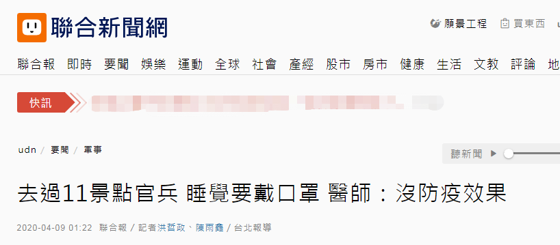 對於這一説法,報道稱,台北醫學大學附設醫院胸腔內科主任周百謙表示,外出、睡前都戴同個口罩,恐對防疫沒有一點效果,反而增加感染風險。
