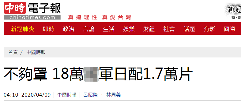 民進黨當局“豪贈”歐美1000萬口罩自己卻不夠用,18.9萬台軍每天只被分1.7萬隻
