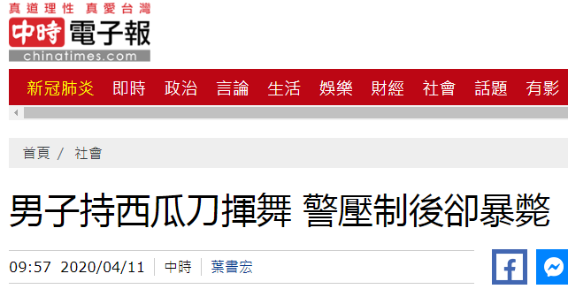 台媒:台灣男子持刀闖火鍋店,警員壓制後當場猝死