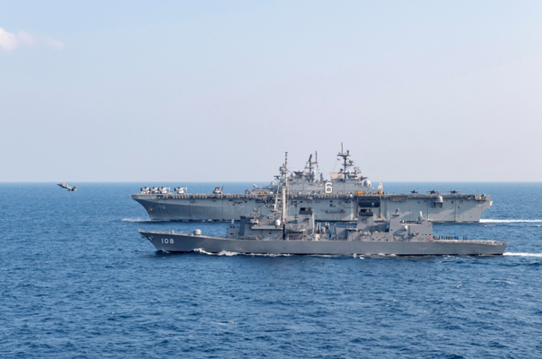 美國太平洋艦隊發佈的消息稱,“美利堅”號兩棲攻擊艦與日本海上自衞隊的“村雨”級驅逐艦“曙”號,於4月10日在東海海域開展聯合訓練。美軍聲稱此舉是為提高與盟友的互操作能力,保衞印度-太平洋地區的和平穩定。另外同樣是在東海海域,美國海軍太平洋艦隊的麥克坎貝爾號驅逐艦與韓國海軍的多艘艦船於4月11日開展聯合演練。