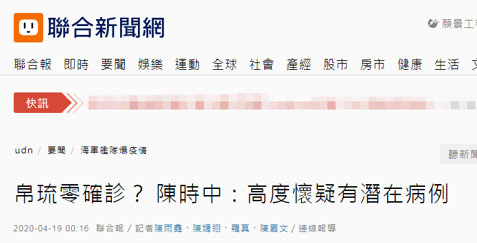 國民黨“立委”吳斯懷18日質疑,台海軍確診案例於4月12日及4月初就出現頭痛、流鼻涕、咳嗽等症狀,為何海軍第一時間未向上級報告,也未依照疫情處置規定立即派員陪同就醫,而是讓他們4月15日下船後返家並自行就醫,由醫院採檢通報。