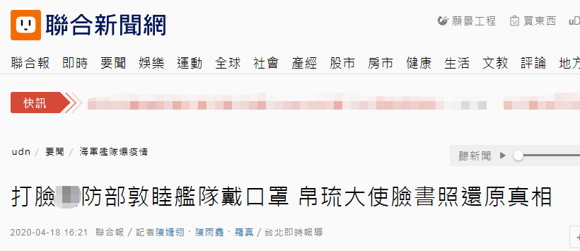 昨日,台灣地區流行疫情指揮中心在記者會公佈,台海軍“敦睦遠航訓練支隊”中磐石艦上出現3例確診病例。該艦隊曾3月12日至15日停靠帕勞,離開帕勞後在公海航行近30天,4月15日艦上成員在台灣左營軍港下船。梅家樹在15日的記者會上稱,“敦睦艦隊”官兵在帕勞活動期間全程配戴口罩。而這一説法隨即遭到打臉。