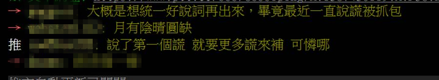 報道稱,也有網友表示,“大概是想統一好説詞再出來,畢竟最近一直説謊被抓包”、“説了第一個謊,就要更多謊來捕,可憐哪”。