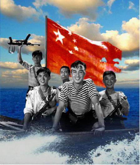 祖國在我心中!中隊長張敏帶領水兵們歷盡艱辛返回祖國大陸。五星紅旗、大海、藍天、白雲、海魂衫、五個硬漢,這個畫面感人至深!海魂衫也被青少年喜愛至今。