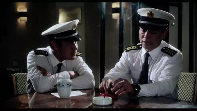 後半部則是87式海軍服裝。兩位擅長演硬漢的演員何麟和陳鋭扮演的海軍軍官,威武、剛毅,一身正氣。