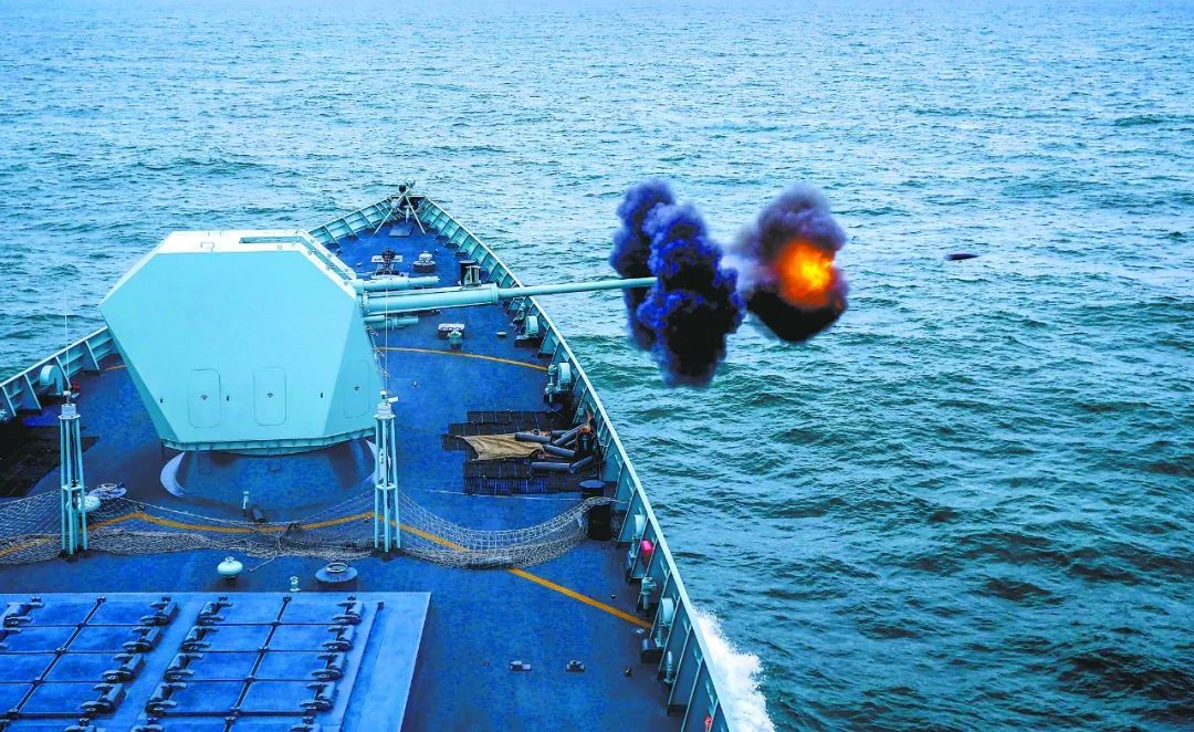 “戰鬥警報!”編隊剛剛抵達訓練海域,便遭遇“敵”海上目標。“目標穩定跟蹤,請示開火!”廈門艦主炮兵嶽昊大聲報告。“開火!”指揮員果斷下令,炮彈呼嘯而出……