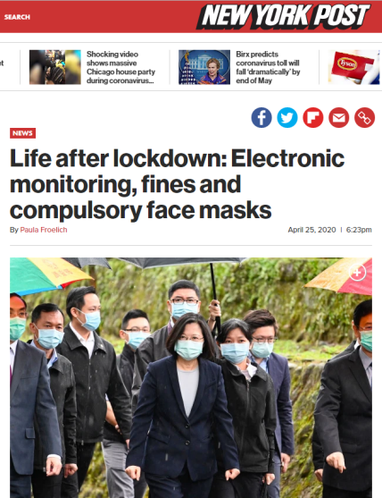 文章開頭提到,當封鎖最終結束時,新的常態將是什麼樣?如果一切都像台灣,那將是更少的社交和更多的“專制(authoritarian)”。《紐約郵報》記者還在文中還引述NBCNews報道提及,台當局通過GPS信號對接受隔離者進行追蹤,報道稱*“令人不安的是,幾乎每個人都被追蹤。” 此外,文中還將台灣形容為“中國的一省(Chinese-run state)”。*