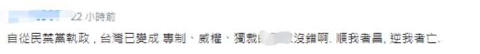 對於民進黨當局的説法,有島內網民則表示,自從民進黨執政,順我者昌,逆我者亡,專制、威權、獨裁,沒錯啊。