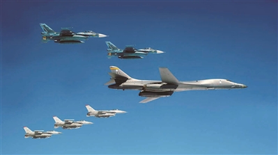 在這種新型作戰概念的指導下,美空軍開始轉變其部隊部署模式,加強戰略轟炸機的全球遠程投送能力,使美軍能在包括美國本土和海外地區的更大範圍內作戰。作為美空基核威懾的“三駕馬車”之一,B-1B戰略轟炸機的有效作戰半徑達5500公里,可至少攜帶80枚MK80低阻力通用炸彈、20枚JDAM精確制導炸彈、30枚CBU型集束炸彈和10枚巡航導彈,有效載荷可達56噸,成為美軍實施“動態武力運用”作戰模式的重要工具。