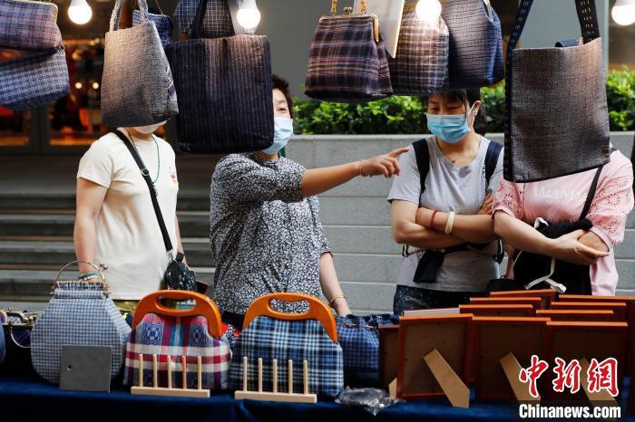 遊客在南京東路步行街上的假日集市購買物品。 殷立勤 攝