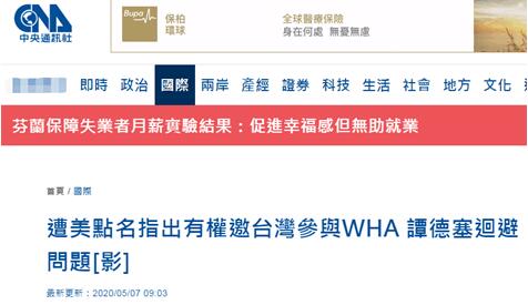 台灣“中央社”等多家台媒報道稱,美國國務卿蓬佩奧此前稱,譚德塞有權邀請台灣參與世衞大會,美國《華爾街日報》記者在5月6日舉行的世衞組織記者會上詢問譚德塞,世衞大會即將舉行,台灣會否受邀參加?譚德塞是否鼓勵會員國特別是中國,允許邀請台灣以觀察員身份參加?如果中國持續反對,“但我知道你有邀請權力”,是否會邀請台灣?對此,譚德塞沒有回應,而是由法律顧問華爾頓(Derek Walton)回應。