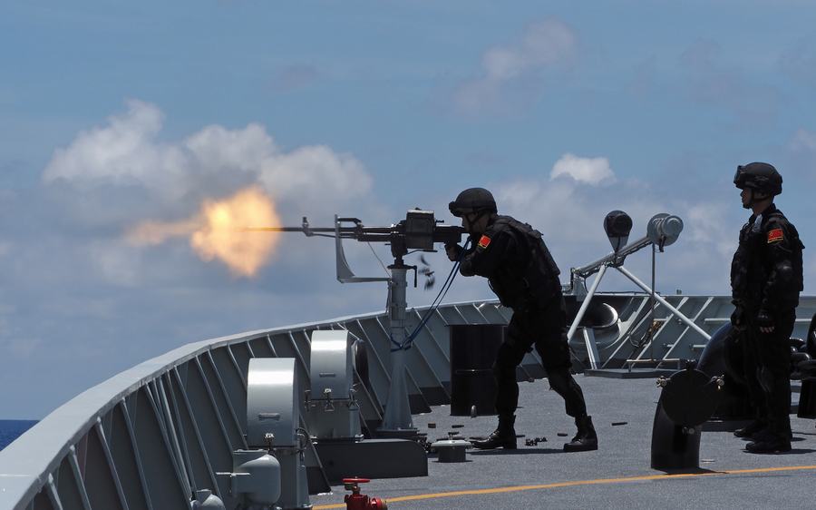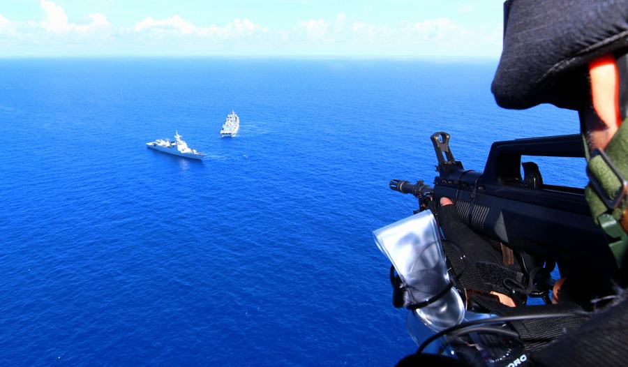 【環球網報道 特約記者 江山】經過連續多天航行,海軍第35批護航編隊航經宮古海峽、巴士海峽已駛入我國南沙海域。5月2日,編隊組織太原艦、荊州艦和巢湖艦在南海某海域開展武力營救遭劫持船舶演練、艦機協同反海盜和實際使用武器等多項針對性訓練,鞏固編隊戰鬥力,提升遂行護航任務的能力。