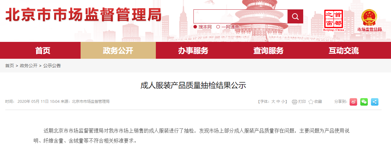 【環球網綜合報道】據北京市市場監督管理官網,近期北京市場監管局北京市市場監督管理局對北京市市場上銷售的成人服裝進行了抽檢,發現市場上部分成人服裝產品質量存在問題,主要問題為產品使用説明、纖維含量、含絨量等不符合相關標準要求。不合格品牌包括ZARA、Coach、範思哲在內的多家知名服裝品牌。