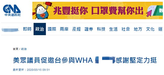 世界衞生大會(WHA)將於5月18日舉行,台灣“衞生福利部長”陳時中今天(15日)受訪時承認,台灣仍未收到WHA的邀請函,他説每一年參加WHA都是非常困難的一件事。而就在前一天,美國當地時間14日,聯邦眾議院205位議員聯名致函世界衞生組織總幹事譚德塞,促邀請台灣以觀察員身份出席今年的世界衞生大會。消息傳出後,台外事部門15日一早便急忙發佈新聞稿,感謝美方“堅定不移支持力挺”。有島內網友嘲諷,“美國眾議員閉嘴,無權要求。美國沒交會費,自己滾出世衞!”