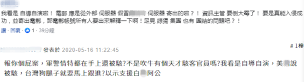 還有網友稱,“看起來是蔡辦有心人士所為,應該定調為宮鬥!”;“如果真的是黑客所為,應該不會只拿蔡蘇會的資料”;“敏感資料被曝光,當然得説那是被變造過的--此地無銀三百兩。”