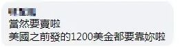 還有人提到,“(美)當然要賣啦,美國之前發的1200美元都要靠你啦。”