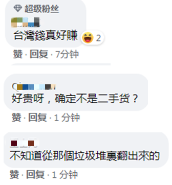 消息一出,立刻引起了部分島內網友的不滿,有人在臉書上留言表示,“台灣錢真好賺”;“好貴呀,確定不是二手貨?”“不知道從哪個垃圾堆裏翻出來的”。
