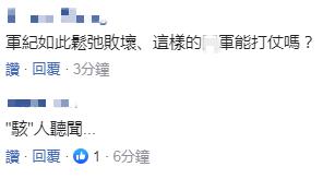 對於此次傳出的貪瀆弊案,有島內網友稱,“‘駭’人聽聞”,也有網友嘲諷,“軍紀如此鬆弛敗壞,這樣的軍隊能打仗嗎?”