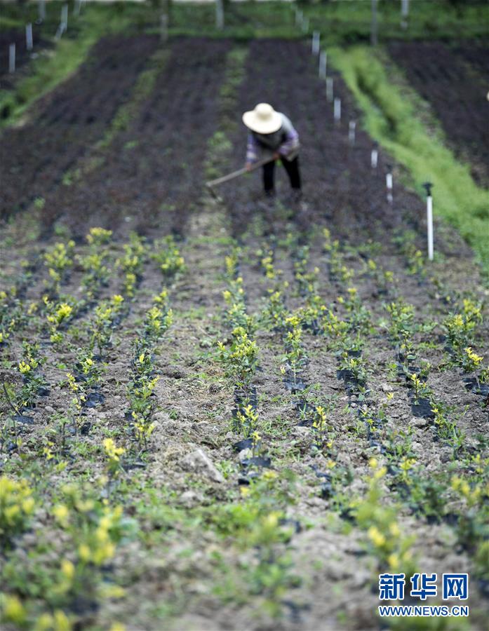 5月21日,農民在貴州省畢節市黔西縣林泉鎮海子村苗木基地勞作。 初夏時節,農民在田間勞作的身影構成一幅幅優美畫卷。 新華社發(尚宇傑 攝)