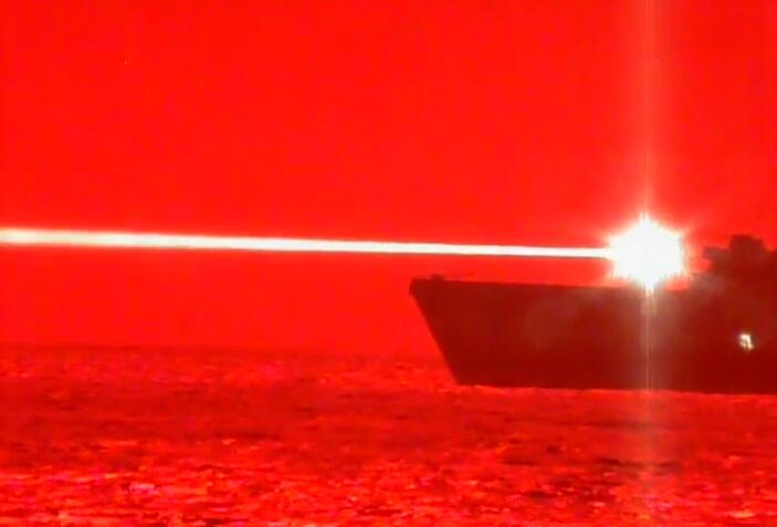 “波特蘭”號兩棲船塢登陸艦艦載固態激光武器系統演示器的試驗視頻,試驗在珍珠港基地附近進行。在美軍發佈的視頻短片裏可以看到這艘船艦的船頭裝有激光發射裝置,隨後出現了一條不是向上、而是沿着海平面的明亮光線。在接下來的畫面裏可以看到一架發光着火的無人機。