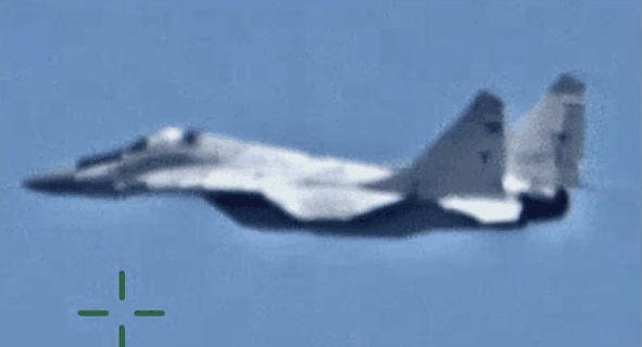 美軍公佈的拍攝到的俄軍米格-29戰鬥機照片,戰機垂尾上的俄羅斯空軍標誌已被抹掉。