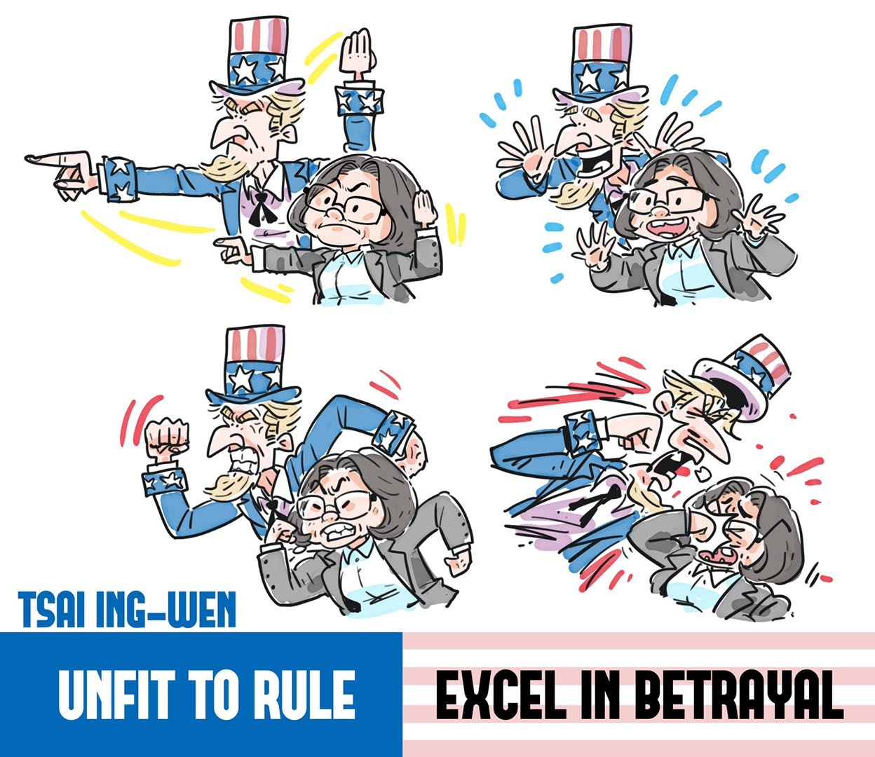 到處兜售“自由”的蔡英文,其實自己也沒什麼自由。一言一行,不過是亦步亦趨、鸚鵡學舌。 美國要借香港問題遏制中國,蔡英文趕緊當馬前卒;美國虛張聲勢威脅制裁,蔡英文隨即揚言停用“港澳條例”,從嚴審查香港居民赴台。當慣了“應聲蟲”,只有奴相沒有主見,只見服從不見自由。“洋主子”那裏人民抗議種族歧視,鬧得沸沸揚揚,在社交媒體上和美國頻繁互動的蔡英文卻唱起了“沉默是金”,大氣不敢出一聲。如果蔡英文真有自由,真愛自由,請大聲説一句:“撐美國的人權!”