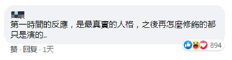 還有網友稱,“第一時間的反應,是最真實的人格,之後再怎麼修飾的都只是演的。”