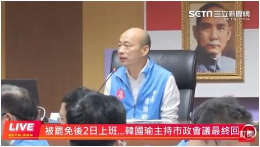 【環球網報道 記者 張麗媛】高雄市長韓國瑜6日罷免確定,最晚6月12日解除職務,據台媒報道,今日(9日)是韓國瑜在“罷免案”通過後的第2天上班。上午10時,他照常參加每週二例行的高雄市市政會議,這也是他卸任前的最後一場市政會議。韓國瑜臉上帶着笑容進場入座,所有人起立鼓掌,韓國瑜回應説:“謝謝!謝謝!搞得我好像當選一樣”。