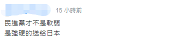 然而,聽到國民黨要求蔡英文及民進黨當局“不可再軟弱”,有島內網民表示,民進黨才不是軟弱,是強硬的(把釣魚島)送給日本。“一個跪拜日本的政府,還有什麼好期待的”。國民黨不要想太多。↓