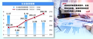 5月信貸社融高增持續,金融視角下的實體經濟復甦表現亮眼。6月10日,央行發佈的5月信貸數據和社會融資數據顯示,當月新增人民幣貸款1.48萬億元,同比多增2984億元,其中有效反映實體經濟融資需求的企業部門新增中長期貸款強勢迴歸。社融規模增量3.19萬億元,比上年同期多增1.48萬億元,推動社融規模存量增速環比上升0.5個百分點至12.5%。