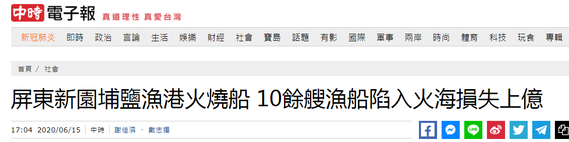 另據台灣“中時電子報”報道,根據現場目擊者表示,今天下午有一艘停泊在漁港內的漁船突然起火燃燒,火勢很快延燒到其他漁船,不少船主見狀想要將船開離漁港搶救,卻因為彼此靠泊,火勢又相當猛烈,船主搶救不及,大火不斷延燒,現場至少已超過10多艘漁船着火,濃煙佈滿整個漁港上空,屏東縣消防局出動十餘輛消防車前往灌救,起火原因不明,初步估計損失超過數億元新台幣。