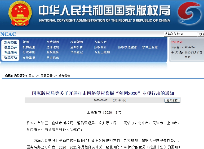 【環球網綜合報道】近日,國家版權局、工業和信息化部、公安部、國家互聯網信息辦公室四部門聯合啓動打擊網絡侵權盜版“劍網2020”專項行動,這是全國持續開展的第16次打擊網絡侵權盜版專項行動。