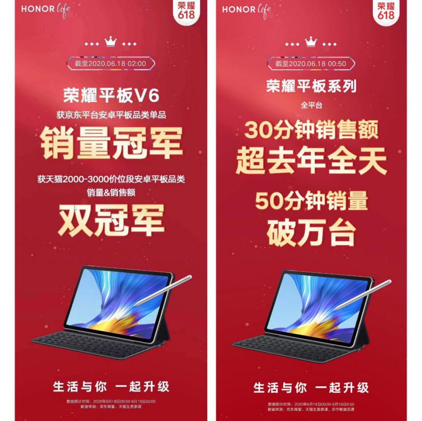 榮耀平板V6首銷戰績出爐:天貓2000-3000價位段安卓平板雙冠軍