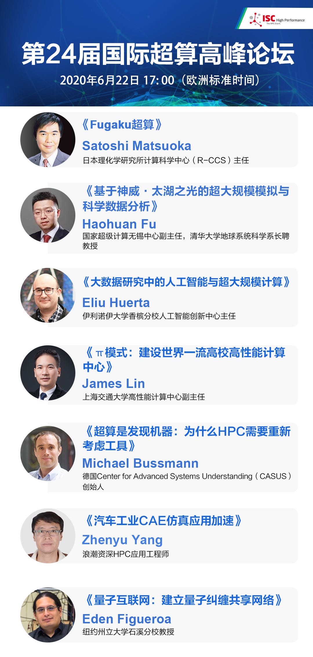 6月22日,2020國際超算大會(ISC2020)期間,第24屆國際超算高峯論壇(HPC Connection Workshop, HPCC)將在線上舉行。承接今年ISC主題“塑造明天”(shaping tomorrow),本屆高峯論壇將邀請來自中、日、美、德頂尖研究機構和高校的多位HPC專家學者,聚焦AI及E級超算技術和應用,重點探討Fugaku、神威·太湖之光、π等世界領先超算如何加速病毒抗擊、氣候模擬、宇宙探索等關乎人類未來的重大課題的研究。